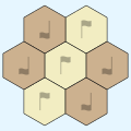 Using the edge relationships, add a tile adjacent to each edge. Flags and colors show how each tile is oriented.