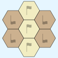 Using the edge relationships, add a tile adjacent to each edge. Flags and colors show how each tile is oriented.