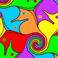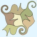 This artwork uses tessellation symmetry Pentagons with 6-way rotation.