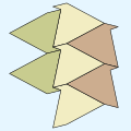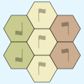 Using the edge relationships, add a tile adjacent to each edge. Flags and colors show how each tile is oriented.
