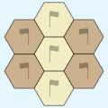 Using the edge relationships, add a tile adjacent to each edge. Flags and colors show how each tile is oriented.