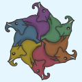 This artwork uses tessellation symmetry Kites with 6-way rotation.