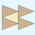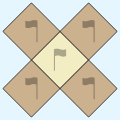 Using the edge relationships, add a tile adjacent to each edge. Flags and colors show how each tile is oriented.