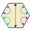 For example, the cell in row "2-way" and column "Hexagons" shows that one tessellation symmetry is based on 2-way hexagons—TCCTCC (Hexagons, rotated).