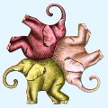 Once the tiles are placed, an artist (you!) can change the shape of an edge. The opposite edge also changes shape, as well as all other same-colored edges. If the artist is good, the result is a recognizable figure!