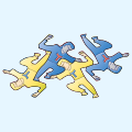 In each artwork on this site, a recognizable figure repeats to fill the page with no overlaps or gaps. The figures are called tiles, and the arrangement is a tessellation.