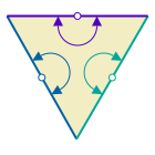 This triangle has three hubs of 2-way rotation—one at the midpoint of each edge.